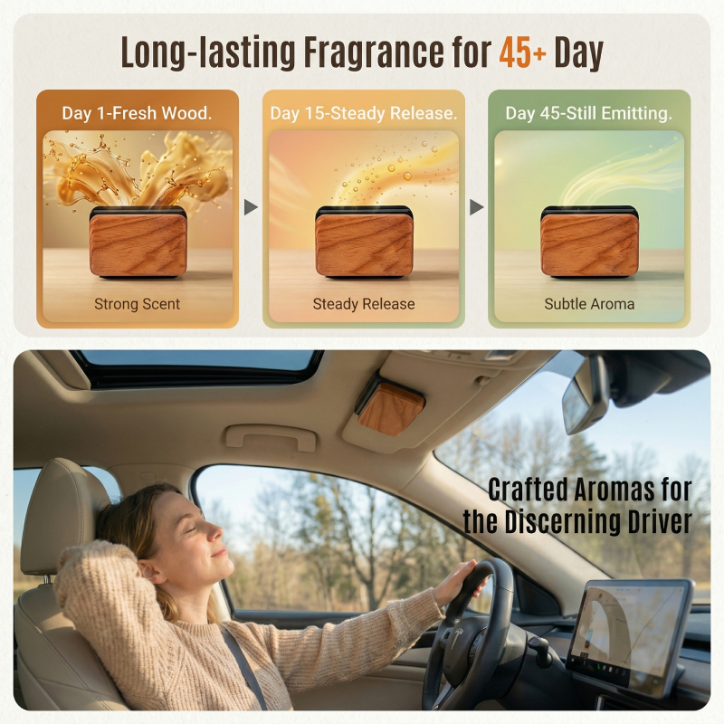 Discreet Luxury: Attaches effortlessly to the sun visor—no messy liquids, no blocked vents.